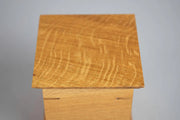 Honor the memory of your loved one with the Craftsman Quarter Sawn White Oak Wood Cremation Urn, a beautifully crafted tribute that showcases the natural elegance of locally sourced lumber. Designed with meticulous attention to detail, this urn features classic craftsmanship elements such as corner keys and an ogee edge on the top and bottom. Finished with natural Rubio Monocoat oil. Opens from the bottom with screws.